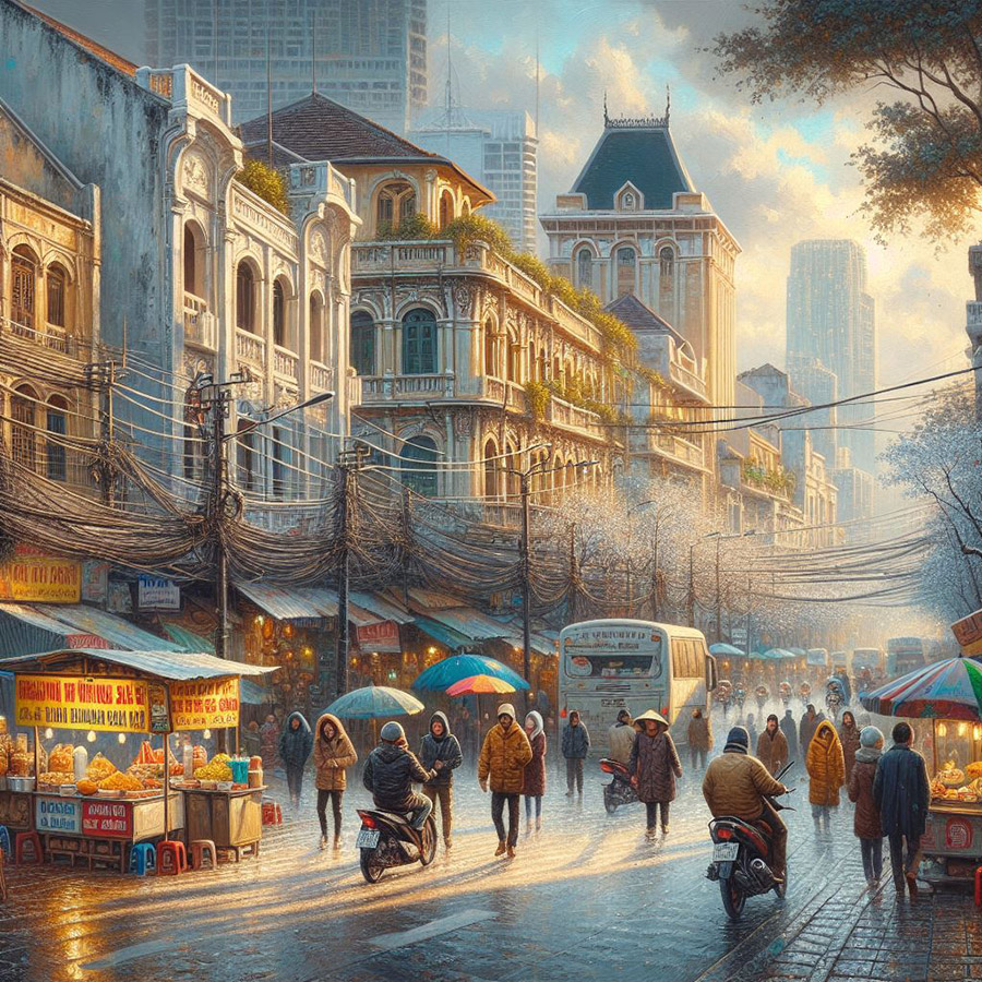 Buổi sớm, cái se lạnh của gió đón chào một ngày mới. Thành phố, dường như, mơ màng hơn, như một giấc mộng nhẹ nhàng đang dần rũ bỏ lớp mưa phủ trước đó. Ánh nắng mặt trời, dịu dàng hơn bao giờ hết, soi sáng những góc phố, biến những dãy nhà xưa cũ thành những điểm nhấn rực rỡ giữa không gian vốn hối hả của Sài Gòn.