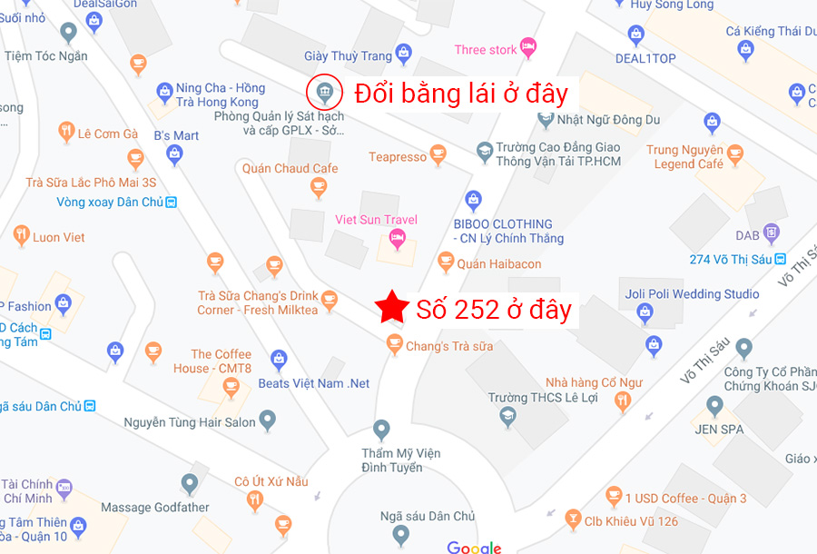 Tới ngày hẹn, hí hửng chạy ra 252 Lý Chính Thắng thì... wtf!?! Đếk thấy cái Phòng quản lý sát hạch và cấp giấy phép lái xe ấy ở đâu, nghi nghi chạy lên 1 chút thì thấy cái hẻm 252, có cái bảng đề tên trường cao đẳng GTVT TP.HCM, quẹo vào thì 1 đàn cò ào tới hỏi đi đổi bằng lái phải không, nghe vậy là biết đúng trong này rồi. Mặc kệ cò hót ầm ĩ xung quanh, tấp vào gửi xe rồi đi thẳng lên phòng đổi giấy phép. Vắng hoe. Chẳng có cái cảnh tấp nập đông vui như trong lời đồn.