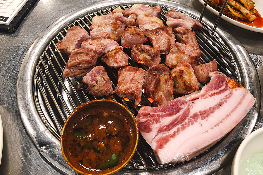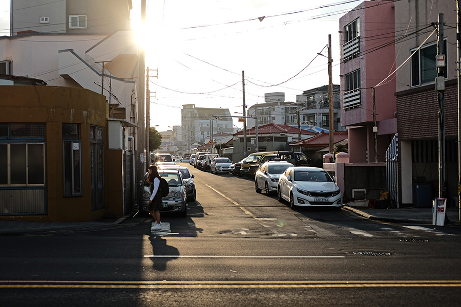 Nhận phòng tại khách sạn Champion, một khách sạn nhỏ xinh nằm gần trung tâm, chúng tôi dành buổi chiều đi dạo quanh bờ biển. Tiếng sóng, ánh hoàng hôn, phố xá yên bình và những xe bán bánh nướng hình con mực thơm lừng. Bữa tối hôm ấy là món thịt heo đen nướng - đặc sản Jeju - tại một quán nhỏ ven đường. Không cầu kỳ, không hào nhoáng, nhưng hương vị đậm đà và cảm giác ấm cúng khiến tôi vẫn nhớ mãi. Chúng tôi kết thúc ngày đầu tiên bằng một ly cafe và bánh ngọt ở quán Angel-in-us, nhìn phố phường Jeju về đêm qua lớp kính mờ sương.