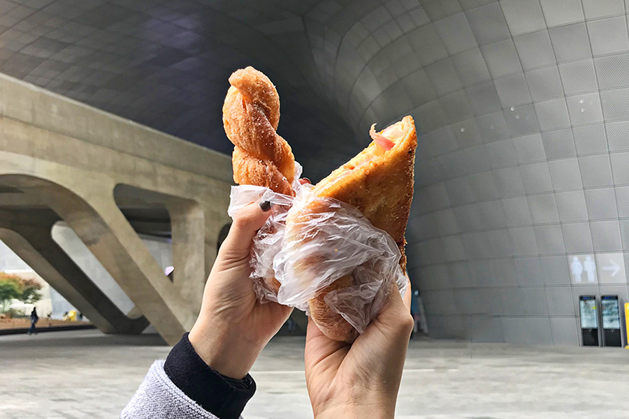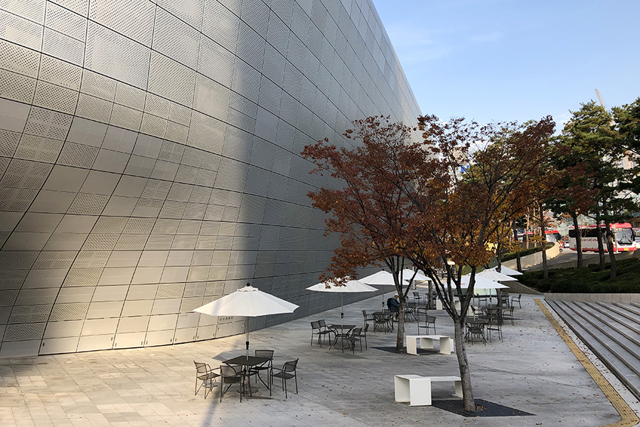 Sáng hôm sau, chúng tôi đến Dongdaemun Design Plaza (DDP) - công trình kiến trúc ấn tượng như đến từ tương lai. Ăn trưa tại một quán ven đường có món mì hải sản cay xé lưỡi và mandu nóng hổi. Chiều ghé Bảo tàng Nghệ thuật Samsung Leeum - nơi quy tụ nghệ thuật truyền thống và đương đại, từ tranh dân gian Hàn Quốc đến các tác phẩm đương đại quốc tế.