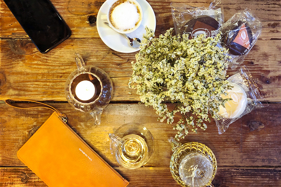 Tối đó, chúng tôi tìm một quán cafe nhỏ trong làng, uống trà và ăn bánh. Không WiFi, không nhạc xập xình - chỉ có tiếng gió và tiếng gỗ kẽo kẹt.